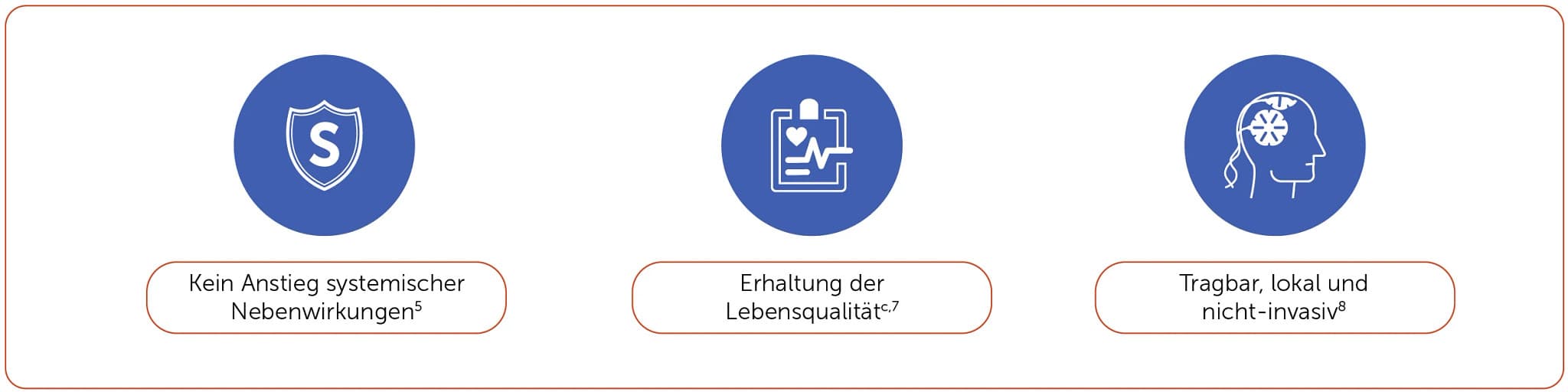 Sowohl signifikant verlängertes medianes Gesamtüberleben (um fast 5 Monate) als auch progressionsfreies Überleben (6,7 Monate vs. 4 Monate im Vergleich zu TMZ allein (p < 0,001). Milde bis moderate Hautirritationen sind das häufigste gerätespezifische unerwünschte Ereignis.5 Zu den klinischen Daten