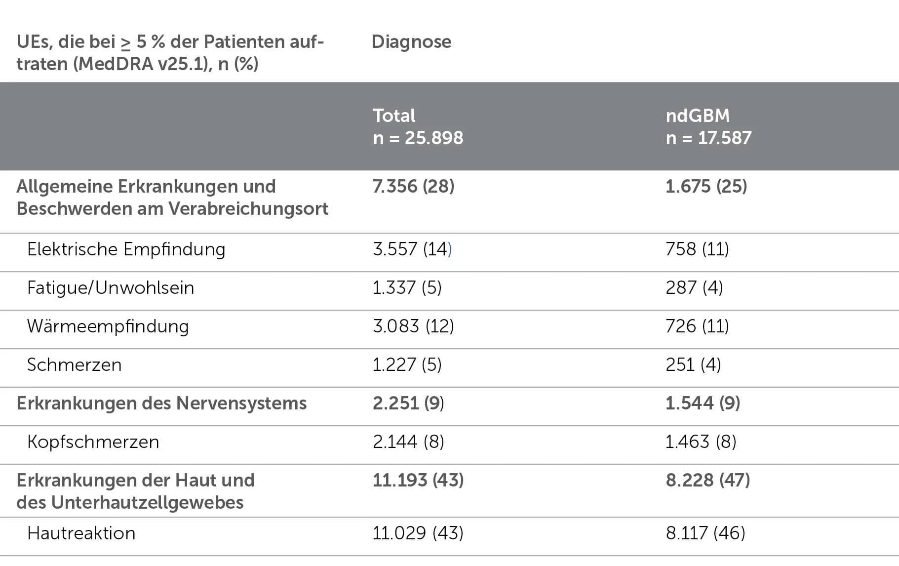 Post-Marketing Sicherheitsanalyse bei Patient:innen mit ZNS Tumoren und TTFields Behandlung zwischen 2011 und 20222