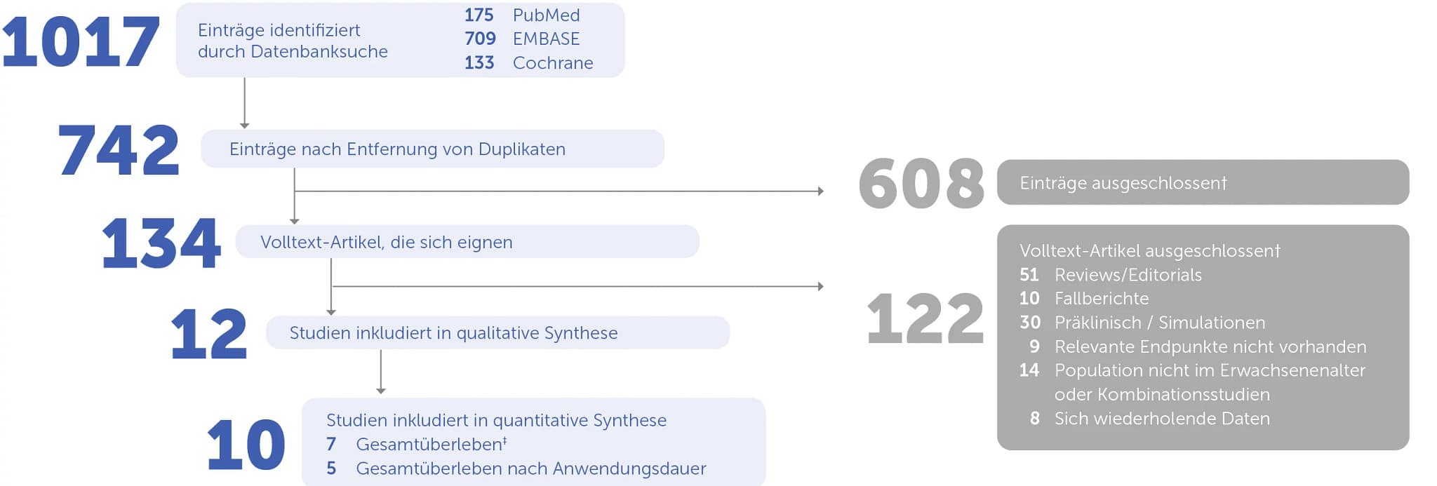 †) Artikel wurden ausgeschlossen, wenn es eine Überschneidung von > 15 % mit Patienten in einer anderen Studie gab oder wenn keine geeigneten Ergebnisdaten vorhanden waren.