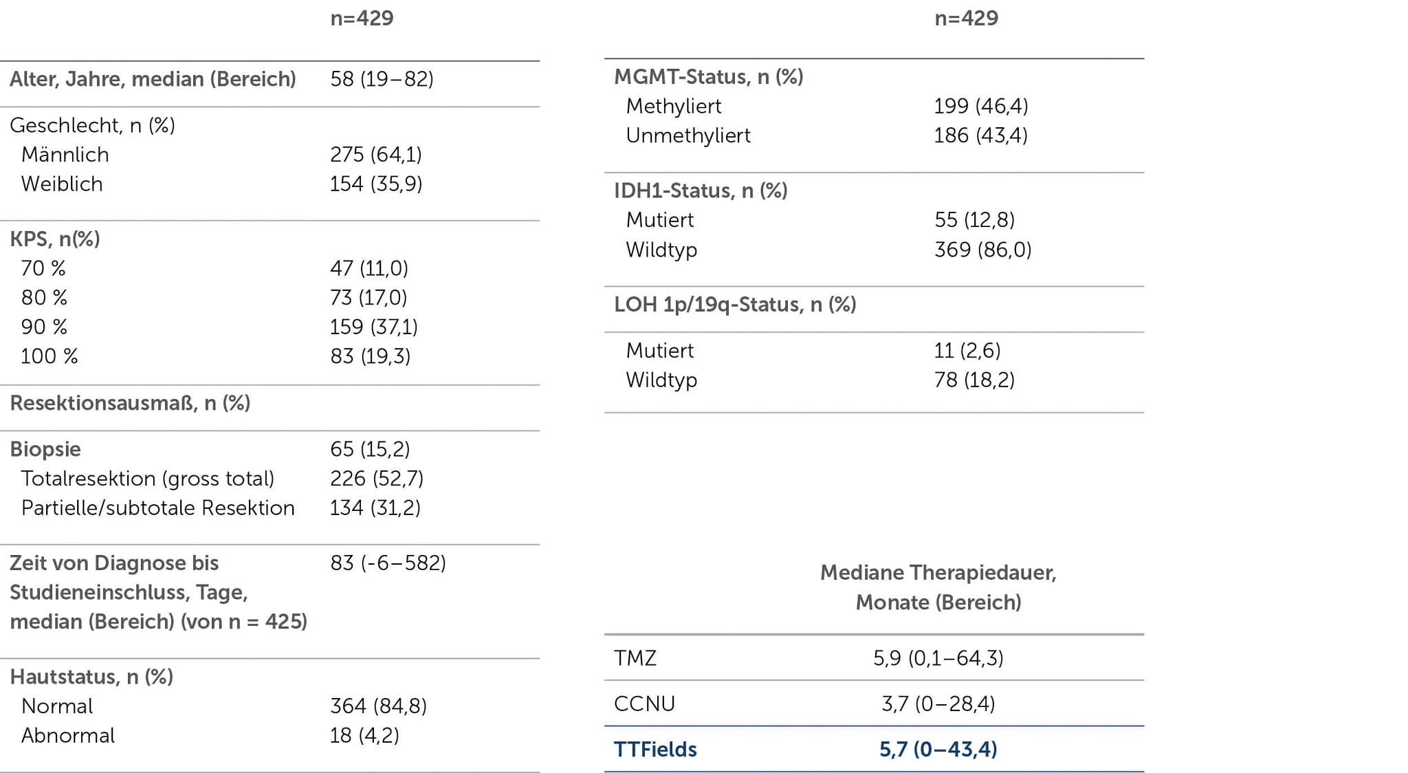 Gepoolte Wirksamkeitsanalyse von TTFields + SOC vs SOC4